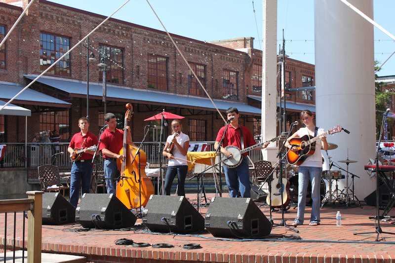 The weather was great, and we listened to several good bands, drinking 'mate', an Urugayan drink, and 'locopops', a local Durham icecream. Around 9.30 pm there was fireworks in the Durham Bulls stadium.