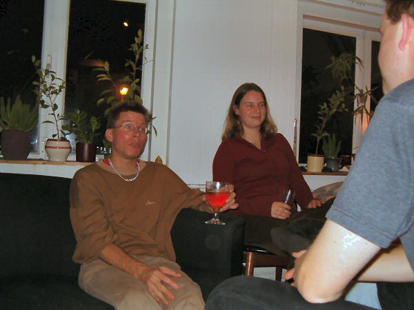 We had a really wonderful meal: hot pot. Hot pot is a Chinese recipe, where there's a big pan with spicy, boiling soup in the middle of the table, and a variety of things to boil in it in smaller dishes around it. In a sense it's a bit like fondue, except that the taste of the soup is very delicious: a lot of herbs and spices have been added.