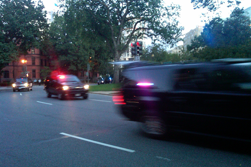 Yesterday I left work at 6.00 pm, and from our metro stop (Foggy Bottom) I walked towards Sasha's work. We walked home together. The police had close off Dupont Circle, so we waited to see if the President would come by. A few minutes later we saw him and the motorcade, always an impressive sight. He was on his way to a fundraiser.