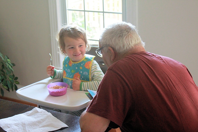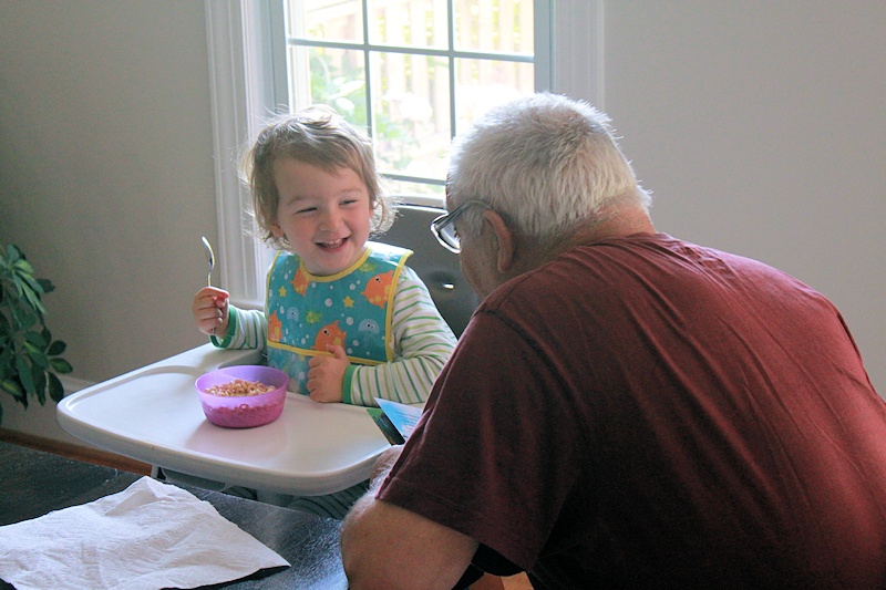 Nora is having a great time with her grandparents.