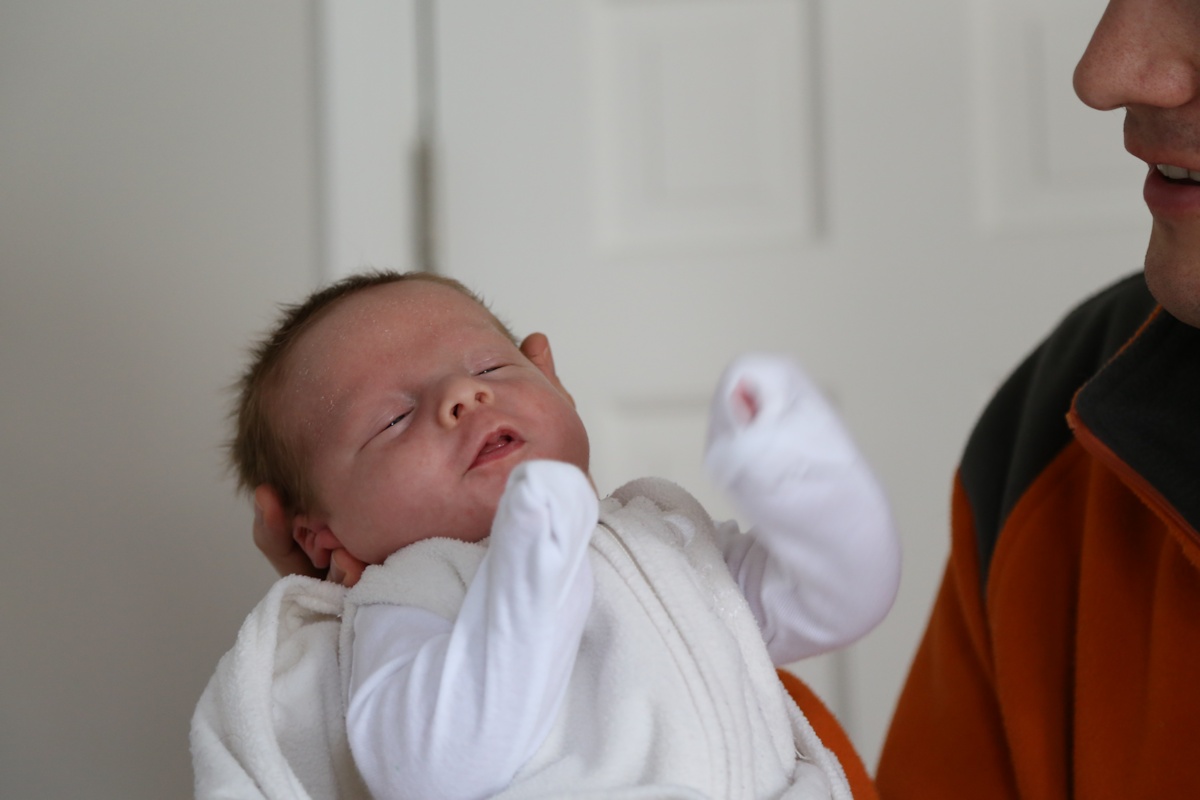 Wow, one month old! Actually, it's 32 days today. In my mind, the first three months with babies are the toughest, sleep-wise. So we're one-third through that period, sometimes called the "fourth trimester". And every now and then they start to sleep longer than three hours between feedings, in particular the stretch after 3.00 am is starting to get longer which is great.