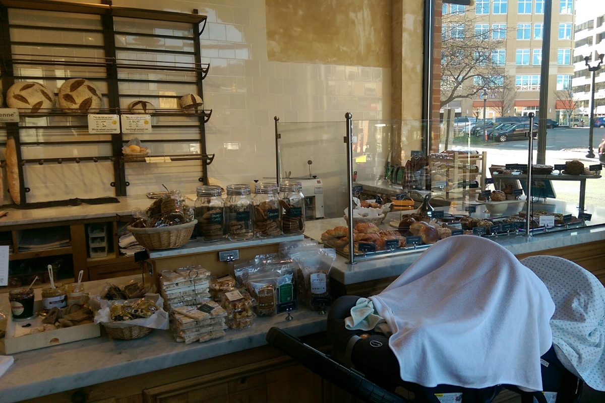 We walked over Key Boulevard, all the way back to our old apartment, and from their I took them over Wilson Blvd. We visited their very first store -- the Belgian bakery, to stay with the tradition -- and did some grocery shopping at Trader Joe's.