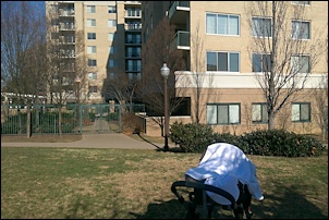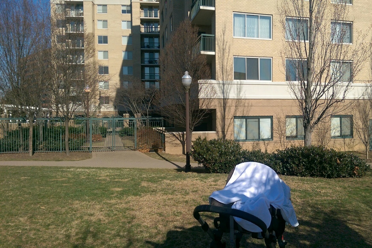 We walked over Johnson and then Key Boulevard. At Whole Foods Sasha and Nora did some shopping while I waited with the boys outside. We also got some more diapers and then walked back over Wilson Boulevard. It was nice and warm and it was great to be outside.
