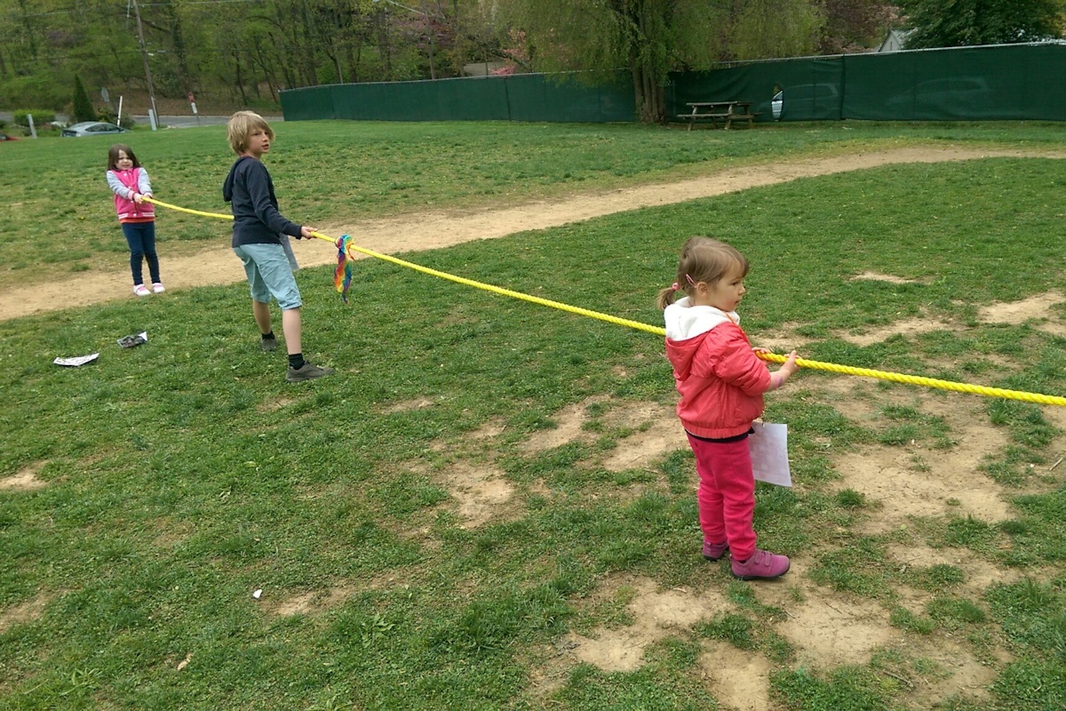 Then it was time for the games. This was the first year Nora participated and she liked it, especially the rope pulling. She also got a nice decoration on her arm (a "tatouage", I said) and she tried the blikken gooien.