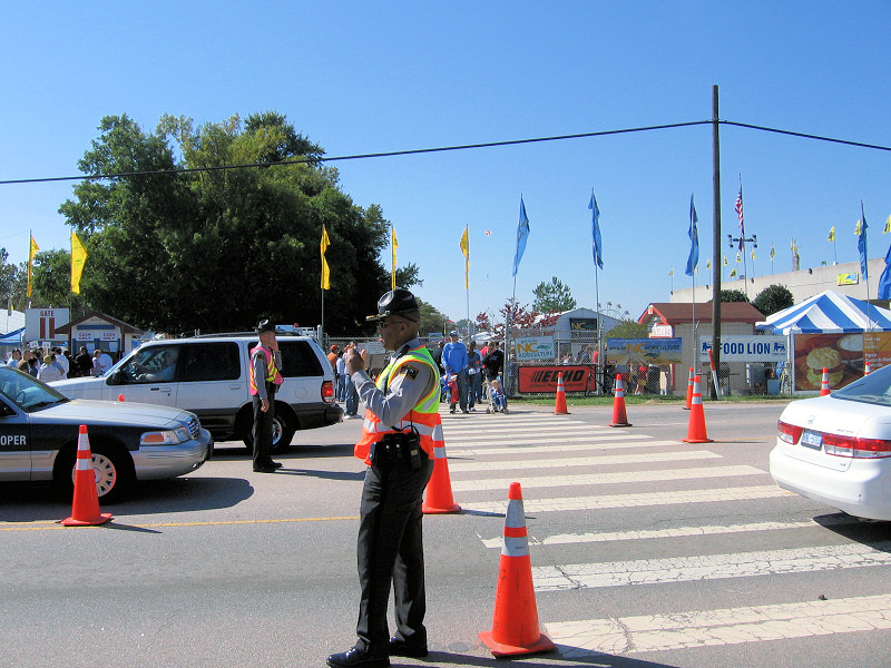 3/20: The police is managing the pedestrian traffic around the fair grounds.