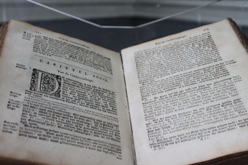 Dutch documents and bibles on display.