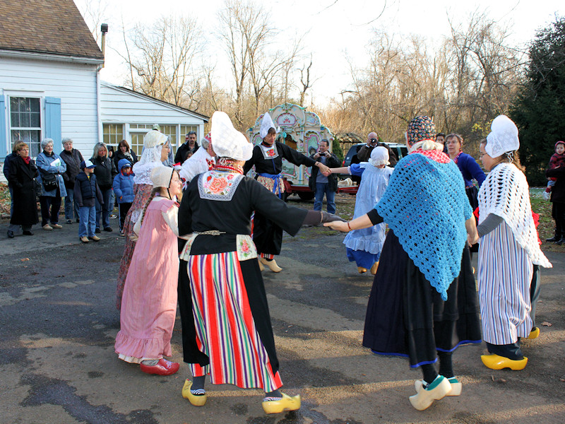 Inside the Van Wickle House Dutch provincial flags and Dutch artwork were on display and traditional food including almond pastry and speculaas from the Holland-America Bakery was on sale. Outside, a beautiful Dutch street organ, the Violanta, played Sinterklaas songs. Johanna Vander Heyden is the driving force behind the Violanta street organ and created the Zwarte Piet costumes.