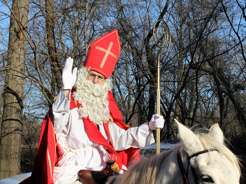Saint Nicholas stayed for about an hour. Children had the opportunity to pet his horse and feed it carrots. There were also demonstration of how to make candles and how to make sauerkraut. Inside a lady was spinning flax, and to the delight of this correspondent outside fresh "oliekoecks" or "oliebollen" were served.