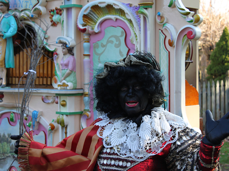 Zwarte Piet in front of the Violanta street organ.