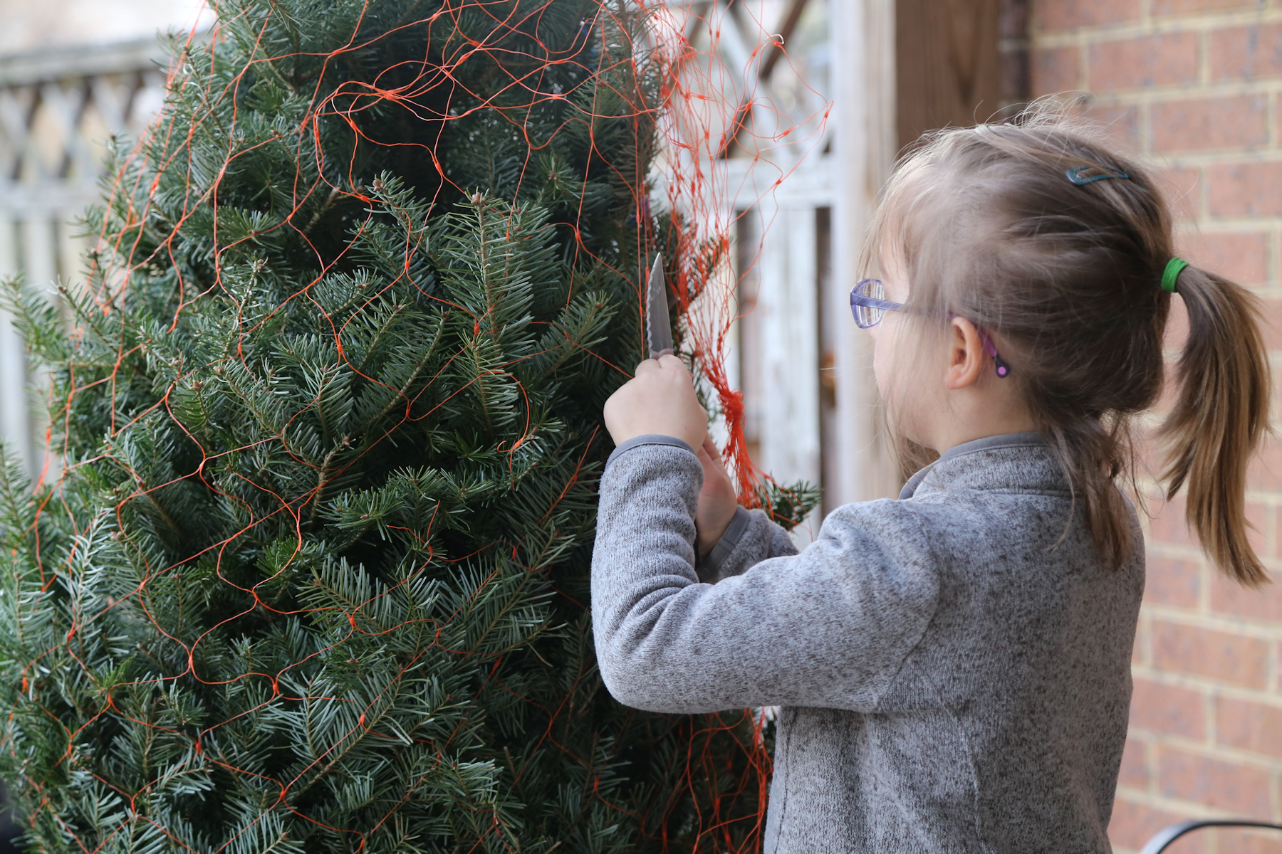 Yesterday morning after gymnastics we went to Home Depot to buy the tree. Like last year, we wanted a manageable size -- on that wouldn't be too dangerous if falling over -- and we found a fresh 5' tree that suited our needs.