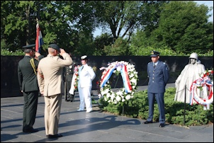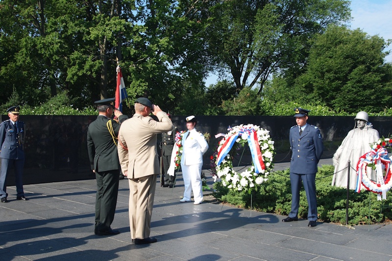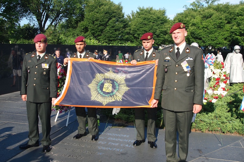 During the ceremony, a detachment of the Dutch 12th Infantry Battalion marched with the colors of the Dutch Korea veterans, the Nederlands Detachement Verenigde Naties (NDVN). The day before, a similar ceremony was held on Arlington Cemetery.