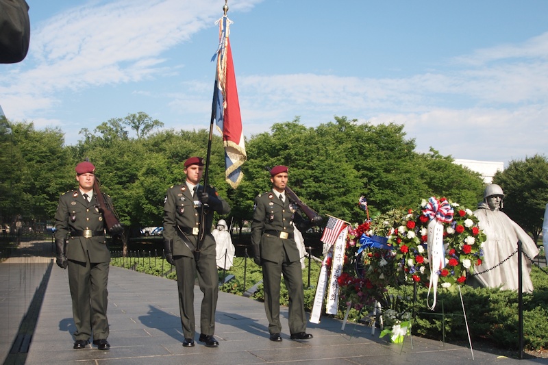 With a wreath-laying ceremony in Washington, D.C. this Saturday, officials from South Korea and the Netherlands paid tribute to the Dutch soldiers who fought in the Korean War. Although the conflict has not been formally resolved to this day, an armistice was signed on July 27, 1953. The ceremony was held at the at the Korean War Veterans Memorial in Washington DC, in D.C.'s West Potomac Park, near the Lincoln Memorial and just south of the Reflecting Pool on the National Mall.