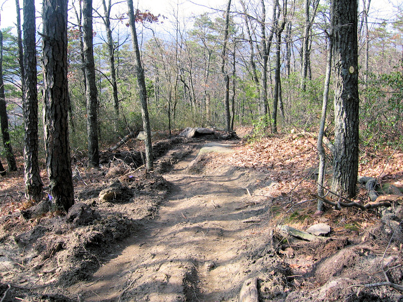 The entrance of the second trail. In the background the characteristic Big Pinnacle of the mountain.